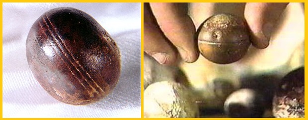 Son unas bolitas esféricas de pirita, encontradas a principios de los 80, por mineros en el interior de una mina en un estrato precámbrico de 2.800 millones de años. Las esferas tienen líneas o surcos, que las circundan con un perfecto trazado.Se exponen en el museo de Klerkdorp.