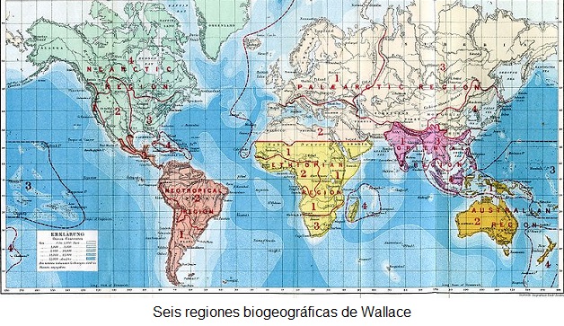 En 1857 sienta las bases de la biogeografía, observó en Nueva Guinea Oriental, en un conjunto de islas (Aru), que las especies eran completamente distintas en lugares que eran climáticamente similares y cercanos como Nueva Guinea y Borneo. Y sin embargo lugares como Australia y Nueva Guinea tenían faunas muy similares. Hoy sabemos por la teoría de la deriva continental que Australia y Nueva Guinea están en la misma placa tectónica y Borneo no. La distribución de las especies no solo se debe a las condiciones medioambientales de entorno sino que además tiene que ver con un proceso geológico, histórico.